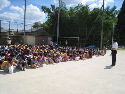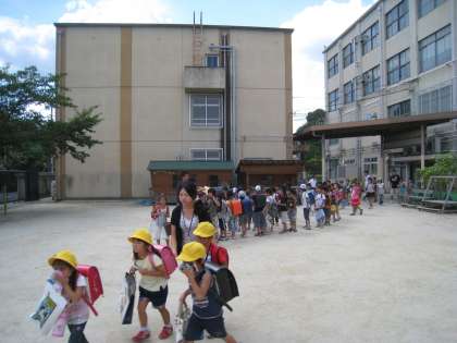 授業が始まった昨日,「地震〜出火」という想定で避難訓練をおこないました。以前は関東大震災の起こった9月1日に実施してきましたが,ここ数年は夏休み明け初日に実施しています。今回は,第1次避難後,第二運動場へ移動し,各町別に並び替えた後,集団下校という形態で行いました。各ご家庭でも,万一の場合に備えた話し合いをお願いします。