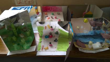 鏡を使った立体造形の作品を互いに鑑賞しあっていました。