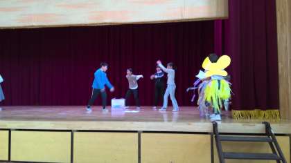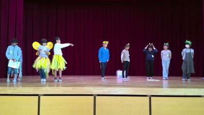 4年生が、学習発表会に向けて取り組んでいました。
