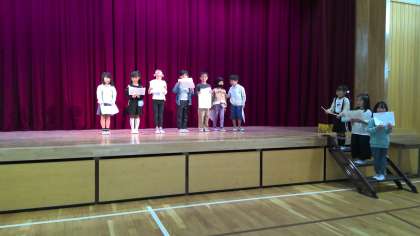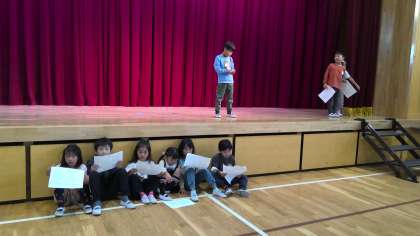 1年生が、学習発表会に向けての取り組みをしていました。