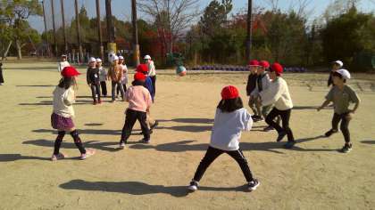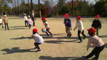 中間休みにドッジボールをして遊んでいました。