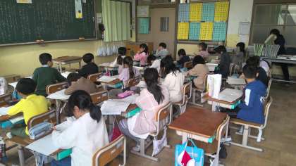 国語の授業で『みきのたからもの』のお話のあらすじをまとめています。
