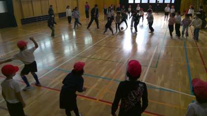 中間休みに児童会の体育委員会主催で3・4年生対抗のドッジボール大会が開かれています。