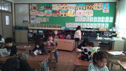 3年生が、3学期の目標を書いていました。読書もしていました。
