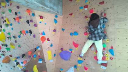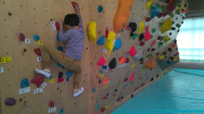 1年生がボルダリングをしていました。