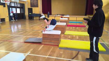 体育の授業で跳び箱をしていました。