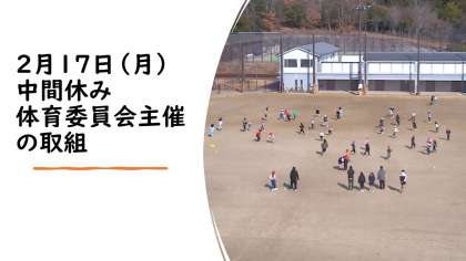 本日、中間休みは運動場で体育委員会主催の取組を行いました。寒空の中でしたが、低学年の子どもたちは楽しそうに走り回っていました。