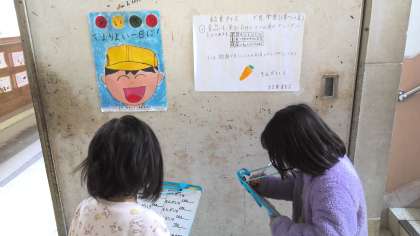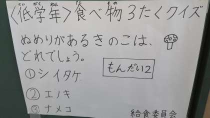 給食委員会で作成したクイズを1年生がといていました。