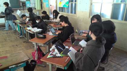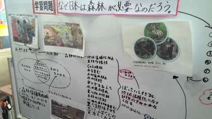 教室や廊下には、各学年ともに1年間のさまざまな学習の成果が掲示されています。