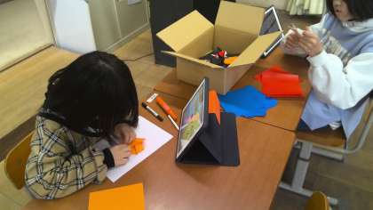 折り紙でゲーム屋さんの景品を作っていました。