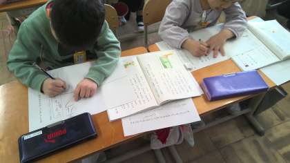ハンス=ウイルヘルムさく『ずっとずっと大すきだよ』という、ぼくとエルフという犬のお話を読んでいます。
