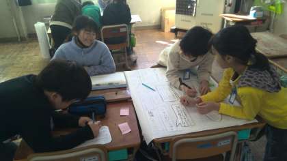 「たかがみね大根新聞」の最後の仕上げをしています。