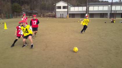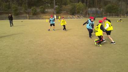 体育の授業でサッカーをしていました。