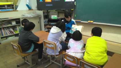 先生にお話を読んでもらっていました。