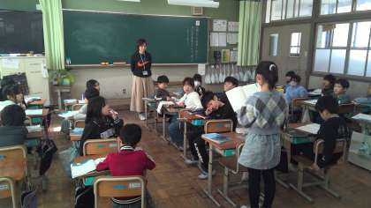 国語『モチモチの木』の授業の様子です。主人公の豆太について思うところを交流し自分と友達の感じ方や意見についてくらべて感じたことを発表しています。