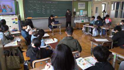 外国語の授業で、好きなものや宝物について紹介しあう会話の学習をしていました。