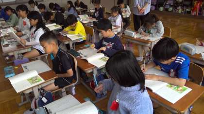 国語の授業の様子です。『春風をたどって』のお話のあらすじを確かめています。
