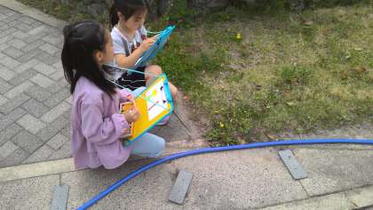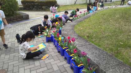 草花などみのまわり自然のようすを観察して絵にかいています。
