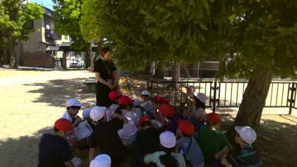 途中で公園に寄り、発見したことや気づいたことを発表する姿が見られました。