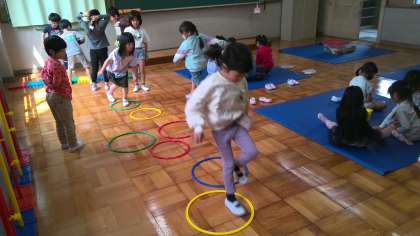 中間休みには、新しいお部屋で思い思いに遊んでいます。