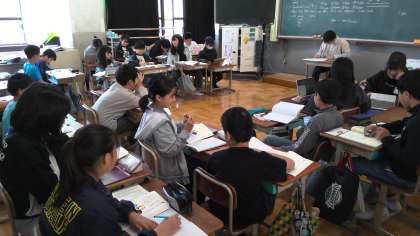国語の授業で、「楽しみは」ではじまる短歌づくりに挑戦しています。