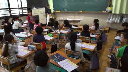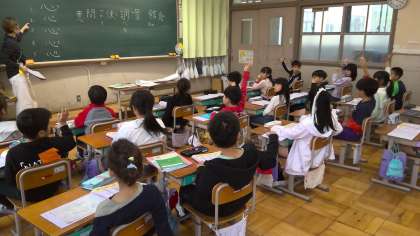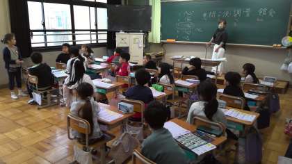 国語の授業で、「問・意・味・湖」の漢字の学習をしていました。
