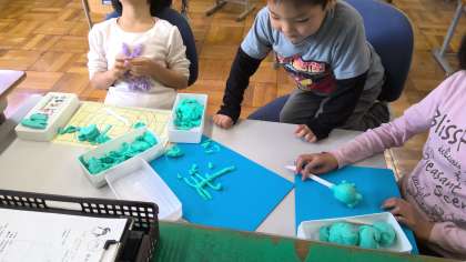 せいかつの授業で、今月のカレンダーを作るため、予定を確認しています。