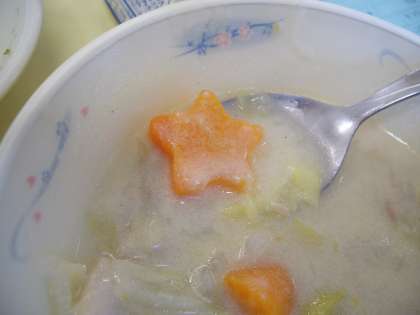 クリーム煮のなかに、星形のにんじんを発見。