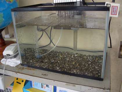 5年教室前に水槽が置いてあります。