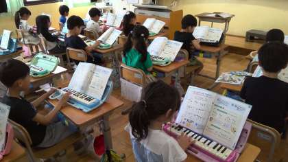 リズムにのること、声をきれいに響かせることに気をつけて、『ドレミの歌』を歌っています。