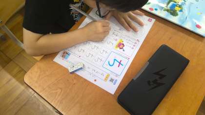 国語の授業『かきとかぎ、てんてんのつくもじをよんだり、かいたりしよう』のようすです。