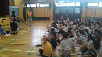 高学年が光の子学級と交流しながら、光の子学級について学んでいます。
