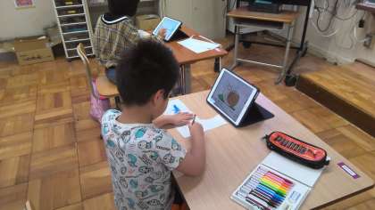 せいかつの授業で、今月の予定を確認して、6月のカレンダーを作成しています。