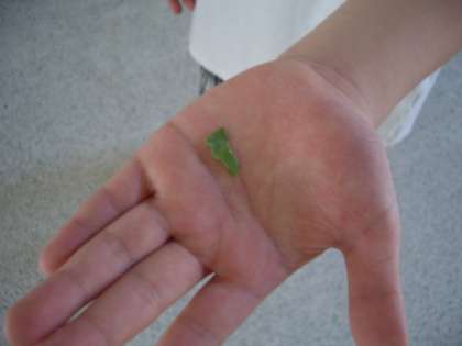 「真ん中にある、白いのがモンシロチョウの卵です」