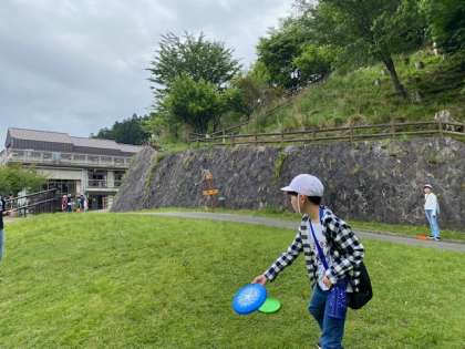 子どもたちは、初めて行うフライングディスクゴルフに苦戦しながらも何度も挑戦していました。