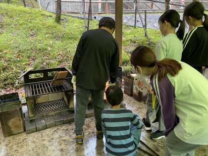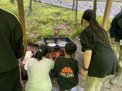 野外炊事場に、食欲をそそるいい香りがしてきました。