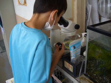 双眼実体顕微鏡でみてみると、卵の観察が細かくできます。