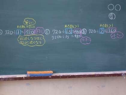 わる数が1より大きいと、商の大きさは小さくなっていきます。