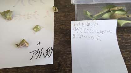 6月8日ゆずのはに生みつけられていたアゲハチョウの卵を観察していました。