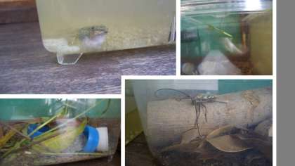 かまきり、ショウリョウバッタ、カミキリムシ、オタマジャクシ
