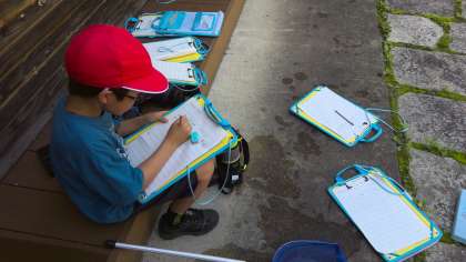 暑いので、日かげに入ってこまめに水分補給もしていました。