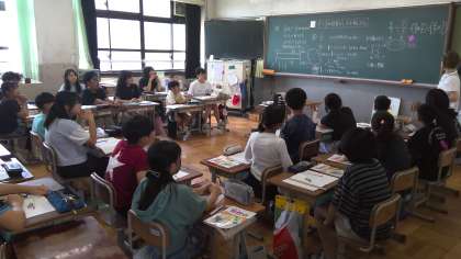 4時間目、算数の授業で分数のわり算を学習しています。