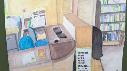 図書委員で貸出しも担当したカウンターがていねいに描かれています。