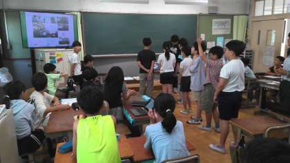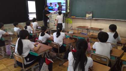 7月の朝会は、オンラインで各教室で校長先生のお話を聞いています。