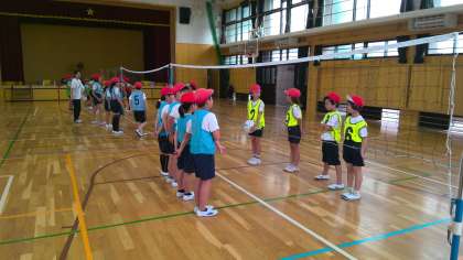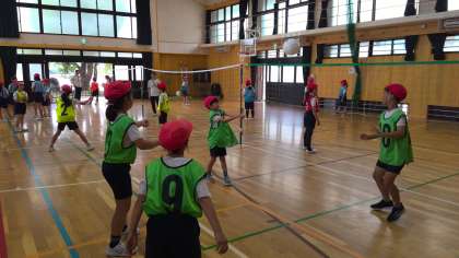 体育の授業でソフトバレーボールをしています。