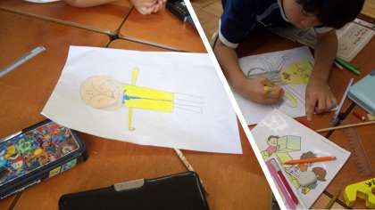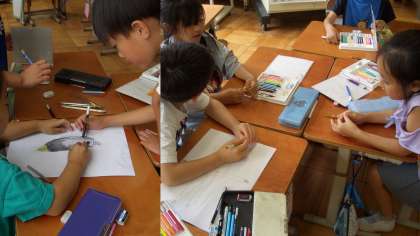 グループごとに工夫がみられるいろいろな「かかし」が出来上がりました。