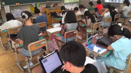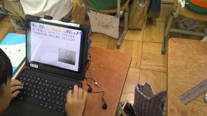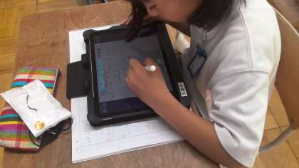 割り算の答えを、見当をつけながら直していくようすをタブレットで記録していました。