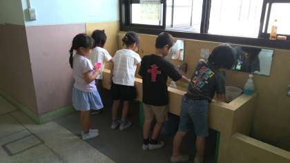 毎週金曜日は、むし歯の予防のために、フッ化物で口の中をすすいでいます。