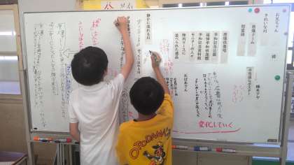 表現を通じて主人公の心の変化の読みを深めています。