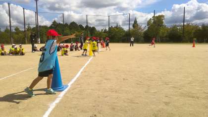 1年生と2年生の合同の体育でリレーの学習をしています。